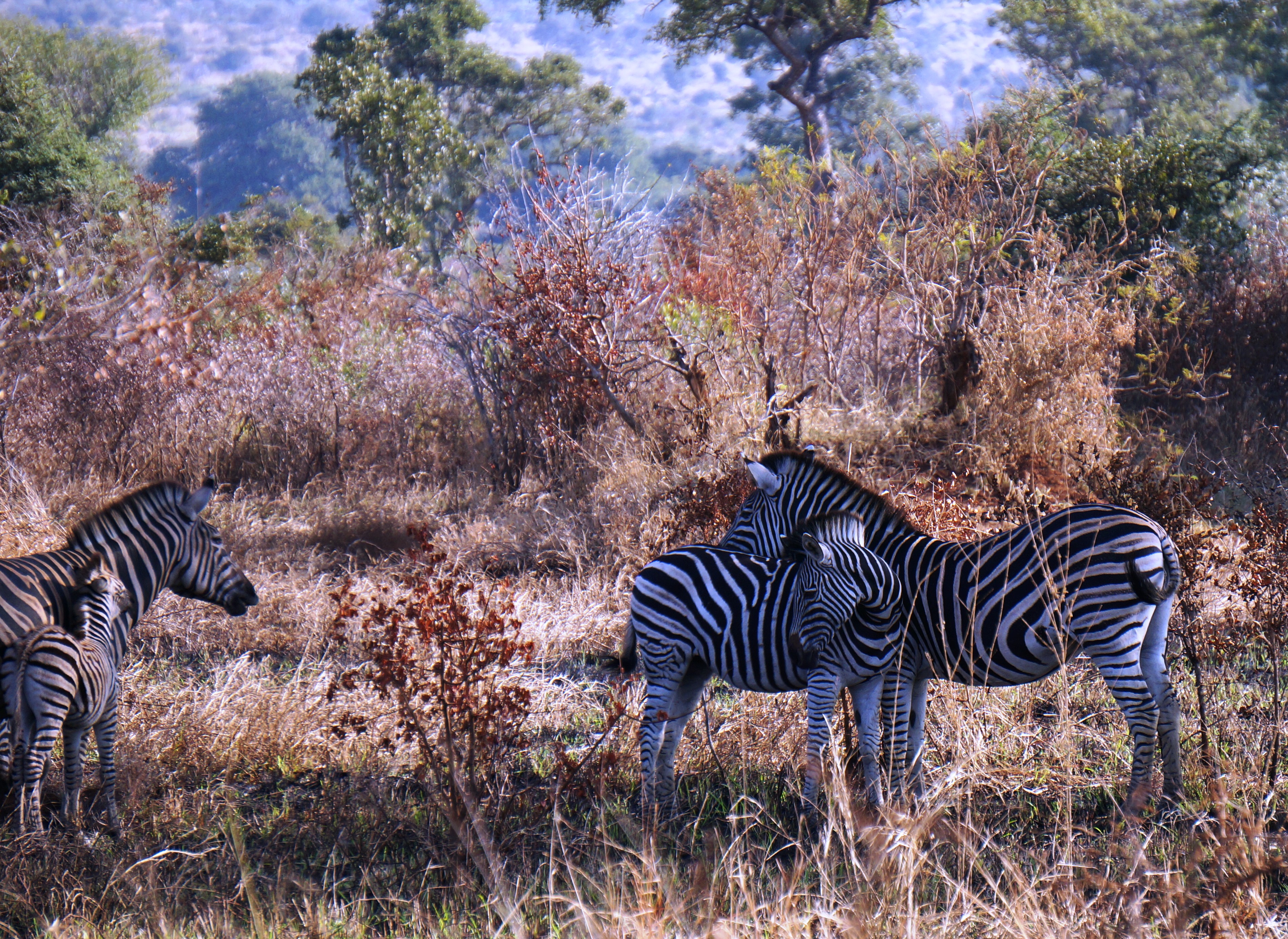 Moments passed before she realized there was another presence. When had the zebra joined them? She strained to see more but dared not move for fear of startling the beautiful beast. Then she saw the movement behind it. Her baby crept closer, still on wobbly legs.